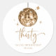 Pegatina Redonda Treinta Gold Disco Ball 30 Fiesta de cumpleaños