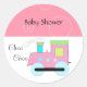 Pegatina Redonda Tren Baby Shower de Choo Choo Rosa