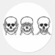 Pegatina Redonda Tres cráneos sabios, ver, escuchar, no hablar mal