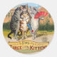 Pegatina Redonda Tres pequeños gatitos madre Ilustracion de oca
