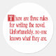 Hay tres reglas para escribir una novela; desafortunadamente, nadie sabe lo que son. Gran dicho en una tipografía elegante. Mueve a tus amigos y compañeros escritores con este artículo.