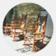 Pegatina Redonda Tres sillas rocosas de madera en un porche soleado