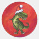Pegatina Redonda TRex Dino en Santa Hat en Red