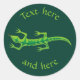 Icono de lagarto verde con formas tribales en el cuerpo. Dos campos de texto personalizado en círculo.