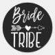 Un pegatina negro personalizable hecho a la medida de tu tribu de novias de confianza. Presenta un estilo clásico de temática blanca y negra con las palabras tribu de novias escritas a mano. Entre ambas palabras hay una flecha tribal que atraviesa un corazón.