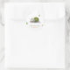 Pegatinas minimalistas neutras para baby shower con una ilustración de un triceratops saliendo de su huevo verde. Genial para agregar un toque personal a tus favores de baby shower. Personalízalo con tu propia información. Ilustrado y diseñado por Patricia Alvarez.