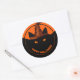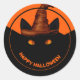Pegatina Redonda Trick o Trek Black Cat & Scary Pumpkin Halloween
