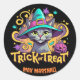 Pegatina Redonda Trick o Trek Cat - Lechuza Nocturna Rosa Negro