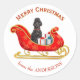 Pegatina Redonda Trineo de Navidad Perro Caniche Negro