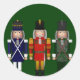 Trio de petardos de petardos navidades: tres petardos de nueces de pie uno al lado del otro sobre un fondo verde sólido. El primer petardo está vestido de azul y blanco con adornos dorados. El petardo central está vestido de rojo y oro con adornos dorados. El tercer petardo está vestido de verde y blanco con adornos plateados. Cada una de estas galletas nudistas está disponible por separado en diversos regalos y productos de Zazzle.
