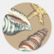 Megan Meagher es conocida por sus simples obras de arte. Esta es una gran imagen de arte decorativo que captura la vida marina con una estrella de mar amarilla y una concha de concha azul y roja. Obtén esta buena impresión de arte hoy en color caqui en tu producto Zazzle.