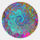 Pegatina Redonda Trippy Sky Blue Abstract Retro Liquid Swirl