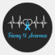 Pegatina Redonda Trisomy 18 Awareness Light Blue Ribbon Love Heartb