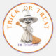 Pegatina Redonda Truco de Halloween o trata a bruja teñida en blanc