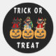 Pegatina Redonda Truco de Halloween o trébol perros pug