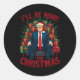 Pegatina Redonda Trump sentado en la presidencia Estaré en casa par