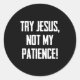 Pegatina Redonda Try Jesus Not My Patience Funny Christian Gift Fai