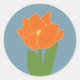 Hermoso tulipán de melocotón con hojas verdes sobre un fondo azul. Útil para Semana Santa, Primavera, jardín y flores. Parejas con la tarjeta Bunny Blank de Pascua.
