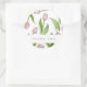 El diseño del producto presenta un patrón de flores de tulipán rosa. Esta ilustración botánica con texto personalizado hace pegatinas modernas y únicas para cumpleaños, Pascua, Día de la Madre, despedida de soltera, boda y más - GRACIAS.