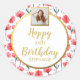 Pegatina Redonda Tulipanes Florales Rosados, Agregar Foto, Feliz Cu