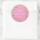 Tulipanes y mariposas editables rosa pegatina redonda de ducha de novia. El diseño presenta una corona de bonito de tulipanes rosados, amarillos y naranjas sobre un fondo rosado. Una mariposa rosada y amarilla que recorre los tulipanes, realzando la estética alegre con un toque caprichoso. ¡Úsalo como sello para sobres en tus invitaciones a la ducha nupcial y con temas florales! Personalice el texto y cambie el estilo de fuente y el color a la medida. Reposicionar y eliminar el texto mediante la herramienta de diseño, si es necesario.