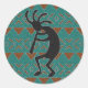 Pegatina Redonda Turquoise Southwest Kokopelli