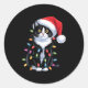 Pegatina Redonda Tuxedo Cat Meow Santa Tuxie Christmas Tree