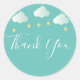 Twinkle rociar la pequeña estrella de la ducha bebé gracias, pegatina redondo clásico. Diseñado para coordinar con nuestra colección de duchas para bebés con rociadores de Twinkle. Con unas bonitas nubes verdes de menta y estrellas doradas sobre cuerdas, sobre un fondo verde neutro de menta, estos pegatinas son perfectos para sellar sobres y favores de rociado de bebé.