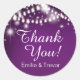 Luces de cuerda brillantes en un fondo violeta profundo. Perfecto gracias pegatinas por bodas de invierno, bodas de otoño o otoño, cumpleaños de hito o cualquier ocasión especial. Comuníquese conmigo para obtener un cambio de color o una solicitud especial en cheryl@cheryldanielsart.com. Cheryl Daniels © 2016.