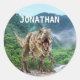 Pegatina Redonda Tyrannosaurus T-rex Dinosaur Monograma nombre