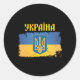 Pegatina Redonda Ucrania Bandera tridente tiña cirílica Patriótica