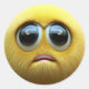 Un adorable y difuso personaje de una pelota amarilla con una expresión triste