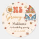 Pegatina Redonda Un arcoiris retro groovy primer cumpleaños