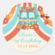 Pegatina Redonda Un arcoiris retro groovy primer cumpleaños