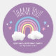 Este lindo y mágico diseño de chicas de ducha de bebé púrpura favorece el diseño pegatina con un arcoiris y estrellas, y puede ser personalizado con el nombre de su hijo y la fecha de su fiesta de cumpleaños. El perfecto y caprichoso ‘gracias’ favorece a los pegatinas por su fiesta de cumpleaños.