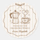 Añada el toque final más dulce a su celebración con este bebé se está preparando gracias pegatina. Con una acogedora taza de café con el corazón y el hervidor de mocha en un estilo minimalista y rústico, esta etiqueta redonda dice "Gracias por celebrarlo con nosotros". Perfecto para sellar bolsos de bienvenida, sobres o pequeños regalos, este encantador pegatina complementa cualquier ducha de café, brunch Café Bébé o moderno fiesta de elaboración de bebés. Un detalle sencillo pero elegante que gustará a sus clientes.