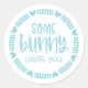 Este lindo pegatina presenta la imagen de texto "Algunos conejitos te aman" en azul y rodeado de hojas y corazones. Hace un sello para sobres perfecto para esas tarjetas de vacaciones e invitaciones.
