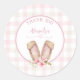 Algunos conejitos están volviendo un chica de cumpleaños gracias fiesta pegatinas de la ronda de 3". Magnífica tipografía en rosa pastel. Adorables orejas de conejo acuático con flores silvestres rosas sobre un fondo de gingham rosa pastel. Fácil personalizar tu nombre especial de chica de cumpleaños.