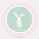 ¡Un conejo se está volviendo uno! Pegatina de conejo lindo en rosa y verde