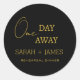 Un día antes ensayar Cena Minimalista Boda negro y oro Pegatina redondo clásico