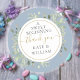 Pegatina Redonda Un dulce comienzo Boda de azul polvoriento y veget