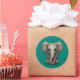 Pegatina Redonda Un elefante pequeño lindo sentado, azul Verde azul