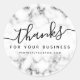 Los pegatinas con mármol blanco adornan el techo y el fondo de un elegante y moderno negocio. Texto del personalizable: "Gracias por tu negocio" con el nombre de tu empresa o URL a continuación.