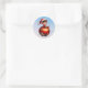 Pegatina Redonda Un elfo Navidad lindo sentado en un adorno gigante