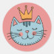 Pegatina Redonda Un Gato Azul Extraño Con Una Corona Amarilla