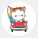 Pegatina Redonda Un gato blanco gracioso conduce a la playa