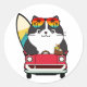 Pegatina Redonda Un gato gordo gracioso está conduciendo a la playa