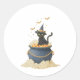 Pegatina Redonda Un gato negro espeluznante en Cauldron. Halloween