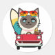 Pegatina Redonda Un gato sonriente conduce a la playa