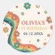 Pegatina Redonda Un Groovy Babe Retro Arcoiris primer cumpleaños